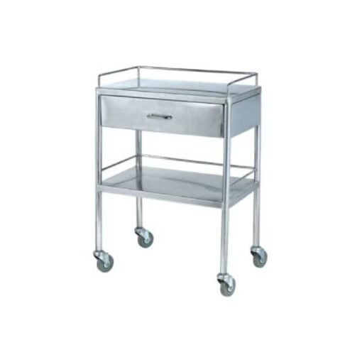 Upgrade your clinic or hospital setup with this Stainless Steel Medical Dressing Trolley, built with top-quality construction for prolonged and reliable use. Designed to meet the needs of busy medical environments, this Stainless Steel Medical Dressing Trolley features a spacious compartment offering ample storage space for medical instruments and supplies. With its durable wheels and sturdy frame, the Stainless Steel Medical Dressing Trolley ensures smooth mobility and long-lasting performance in any healthcare setting.